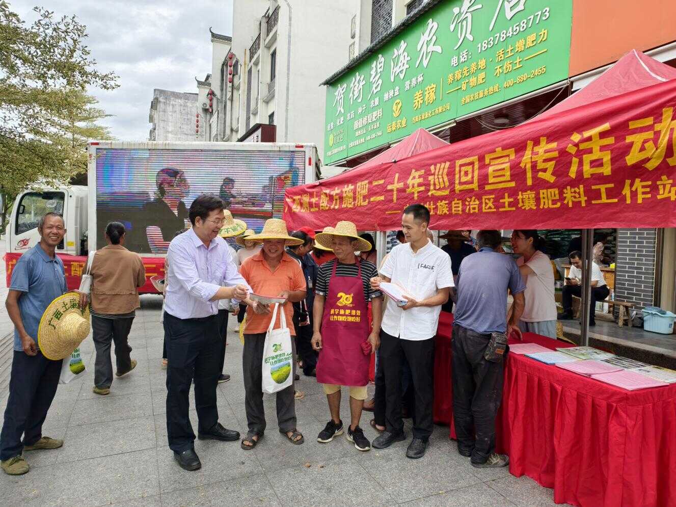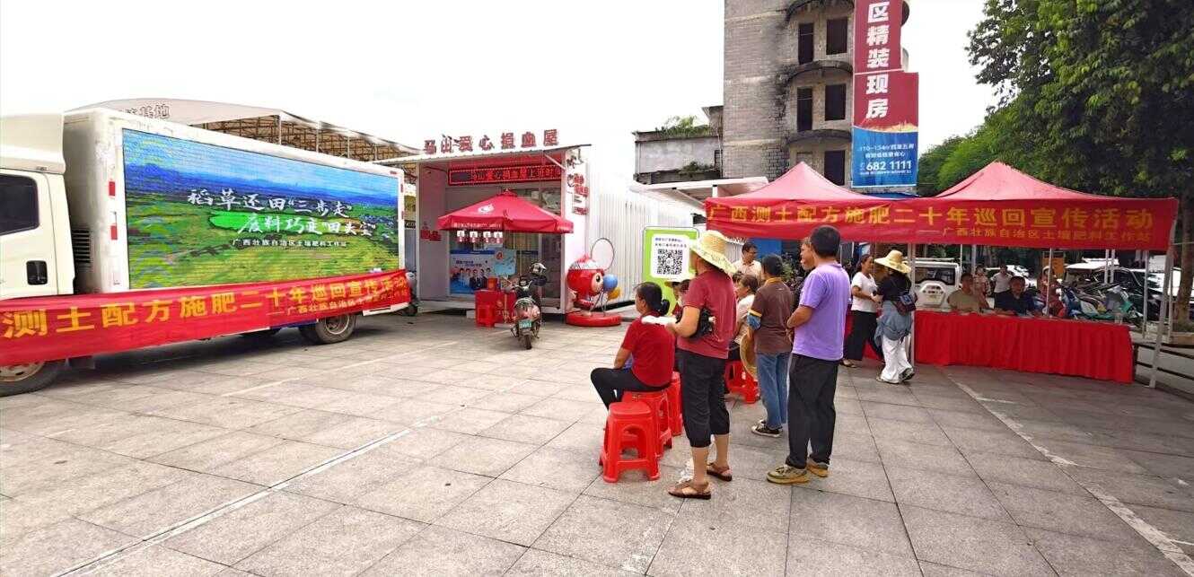 金秋九月,丹桂飘香。一辆辆悬挂着“广西测土配方施肥二十年巡回宣传活动”横幅的大篷车驶入乡镇集市,成为一道流动的乡村风景线。今年,恰逢广西实施测土配方施肥项目二十年,这场以“廿载测土破解土壤密码 科学施肥智绘壮乡丰图”为主题的大篷车巡回宣传活动,正将二十年来的丰硕成果与最新的科学施肥技术服务,送到农民群众心坎上。