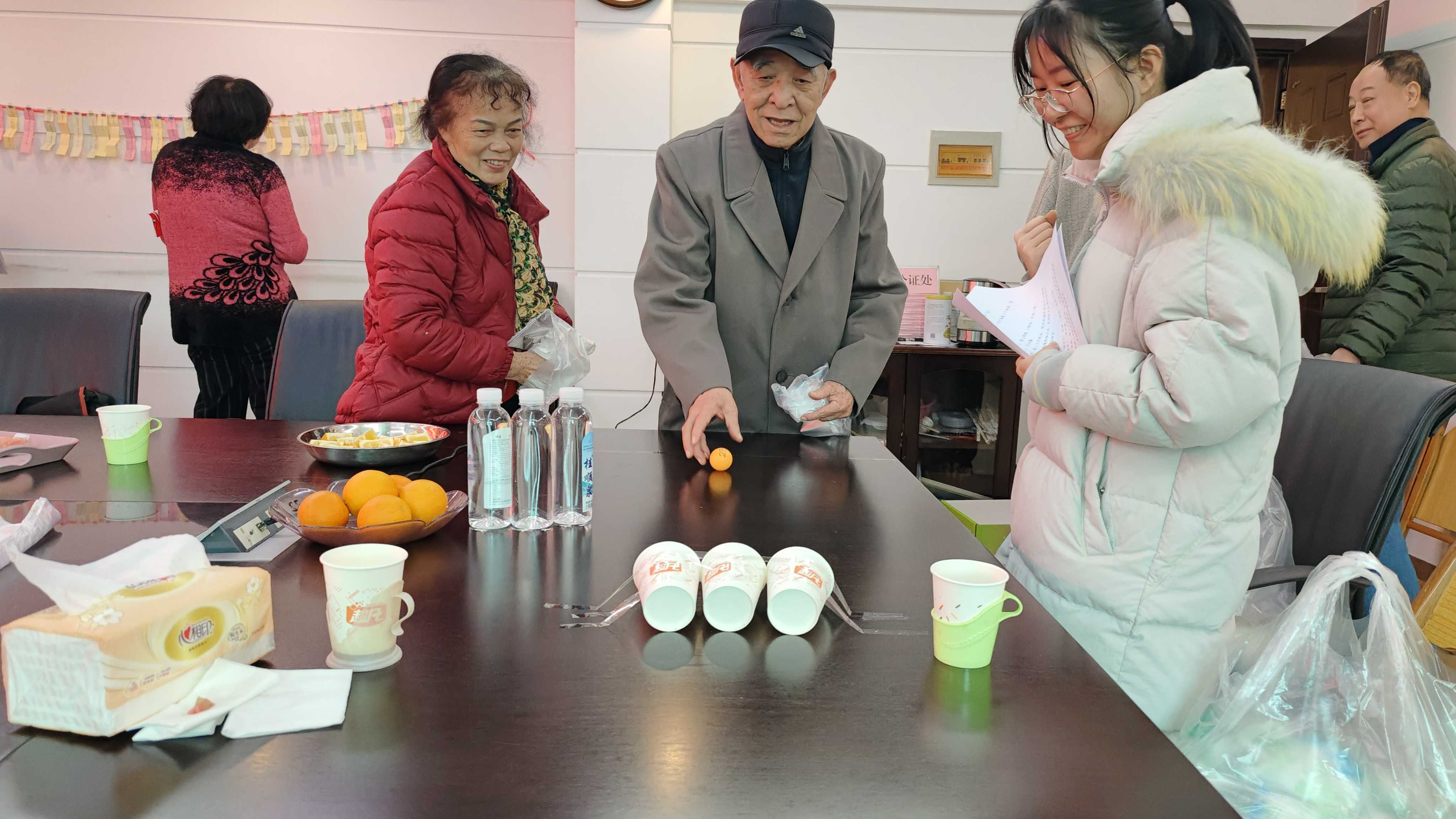 座谈会结束后,开展了新春趣味活动。活动设置了猜谜语、掌上明珠、投乒乓球等活动项目,老同志们热情高涨、兴致勃勃,积极参与到活动中。