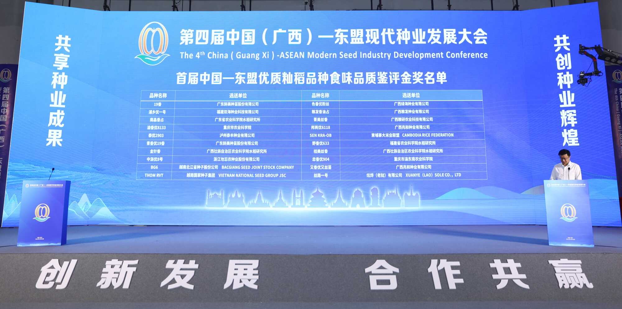 为加快推进水稻品种培优、品质提升、品牌培育,促进中国-东盟种业区域交流合作,中国(广西)-东盟现代种业发展大会组委会组织开展了首届中国-东盟优质籼稻品种食味品质鉴评活动。10月28日,在第四届中国(广西)—东盟现代种业发展大会开幕式上,自治区党委农办专职副主任韦波公布了获奖名单。