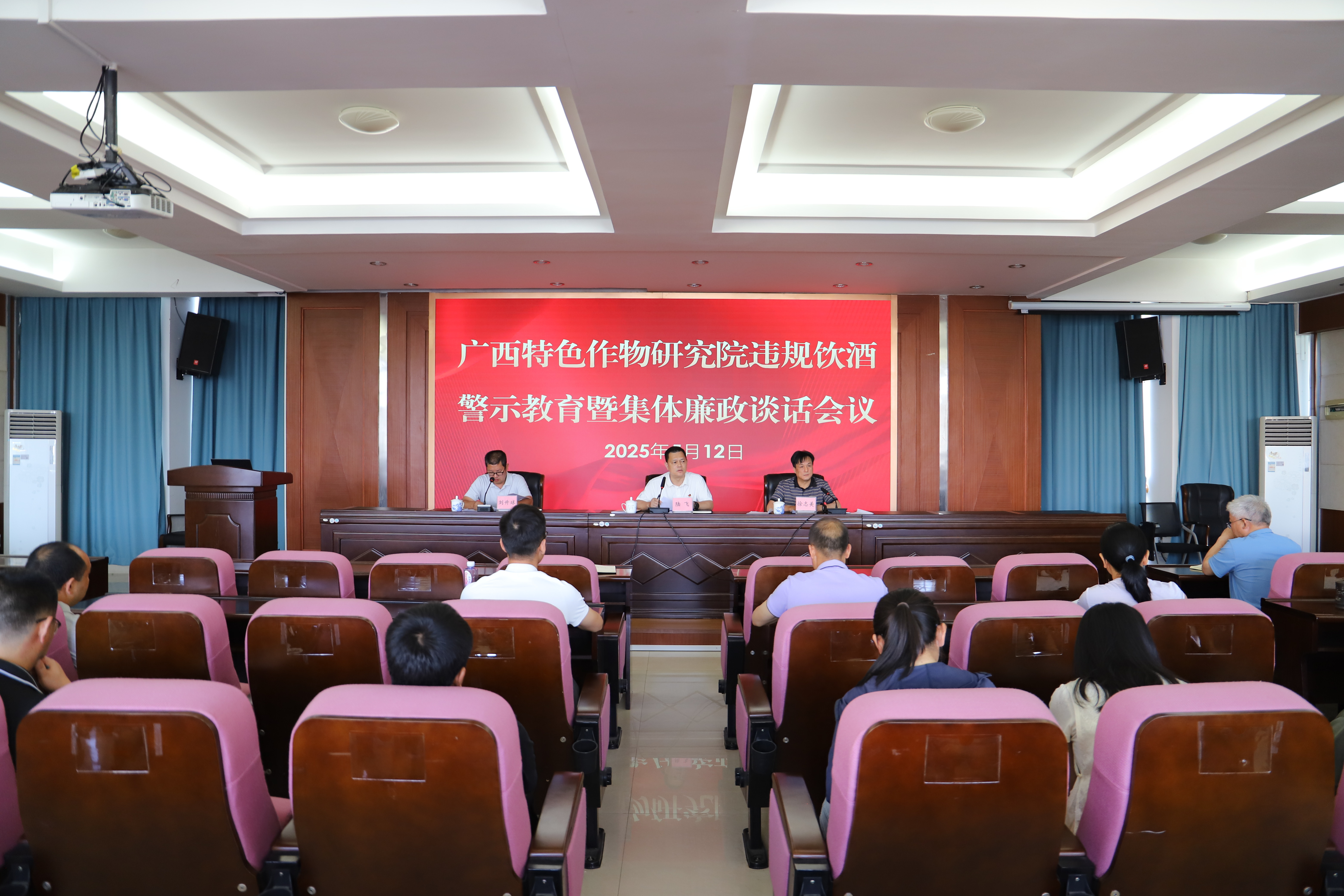 5月12日,广西特色作物研究院开展违规饮酒警示教育暨集体廉政谈话。该院党总支书记、院长陆飞主持会议并讲话,全体干部职工参加会议。