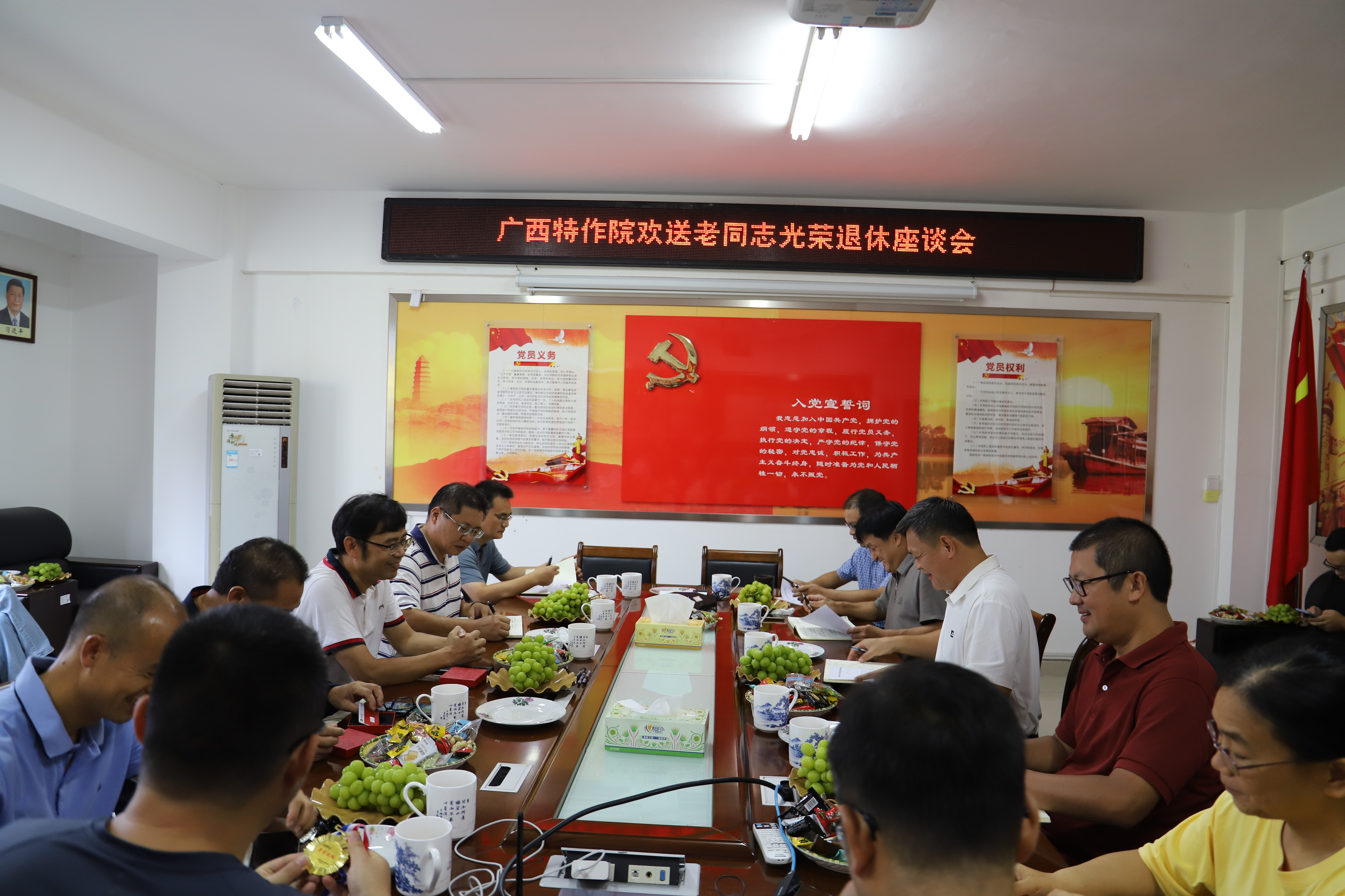 8月26日,广西特色作物研究院举办欢送全金成、梁瑞郑同志光荣退休座谈会。院党总支书记、院长陆飞等院领导、院属各部门负责人及职工代表参加座谈。
