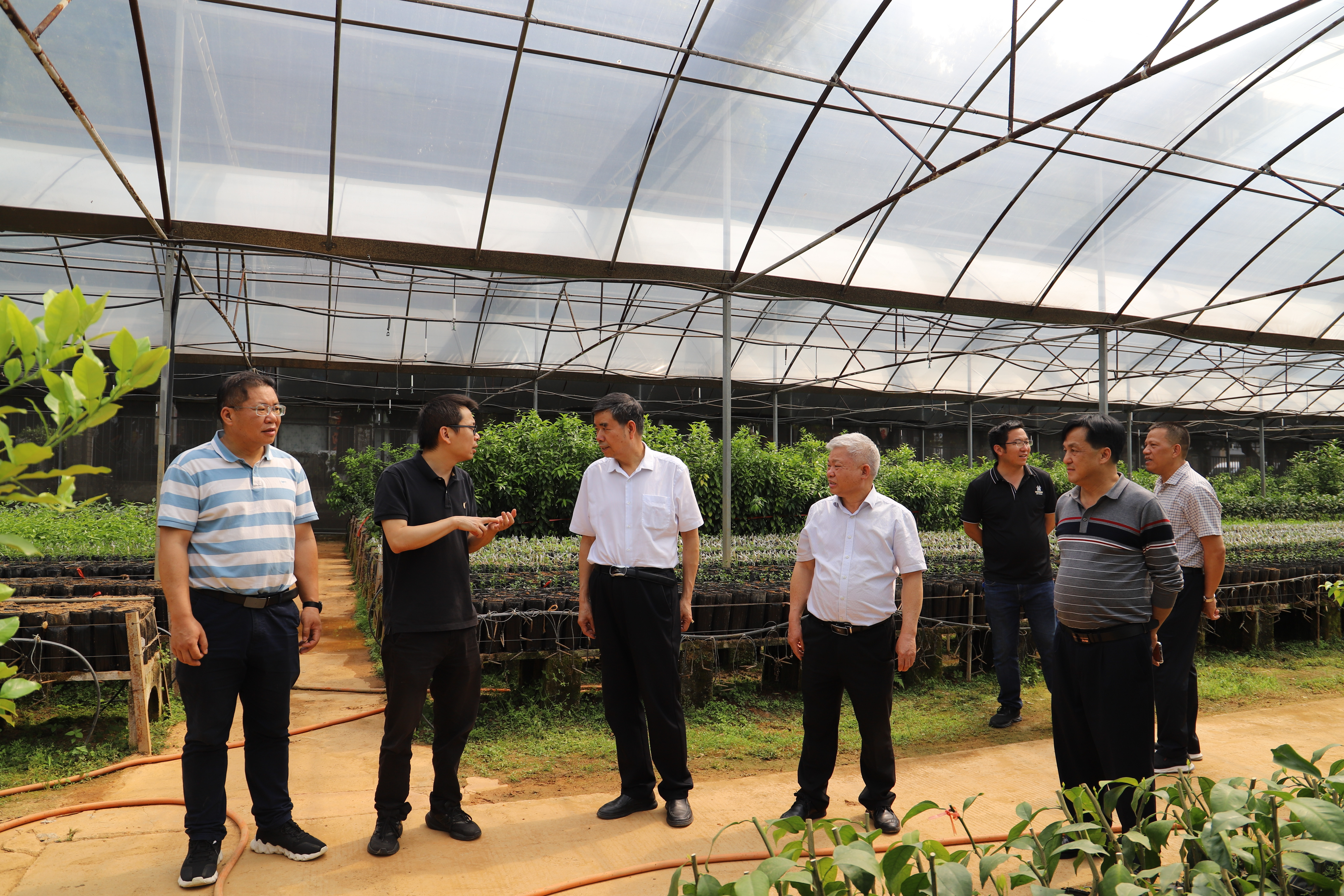 徐明岗院士(左三)参观广西特色作物研究院柑橘无病毒苗木繁育基地