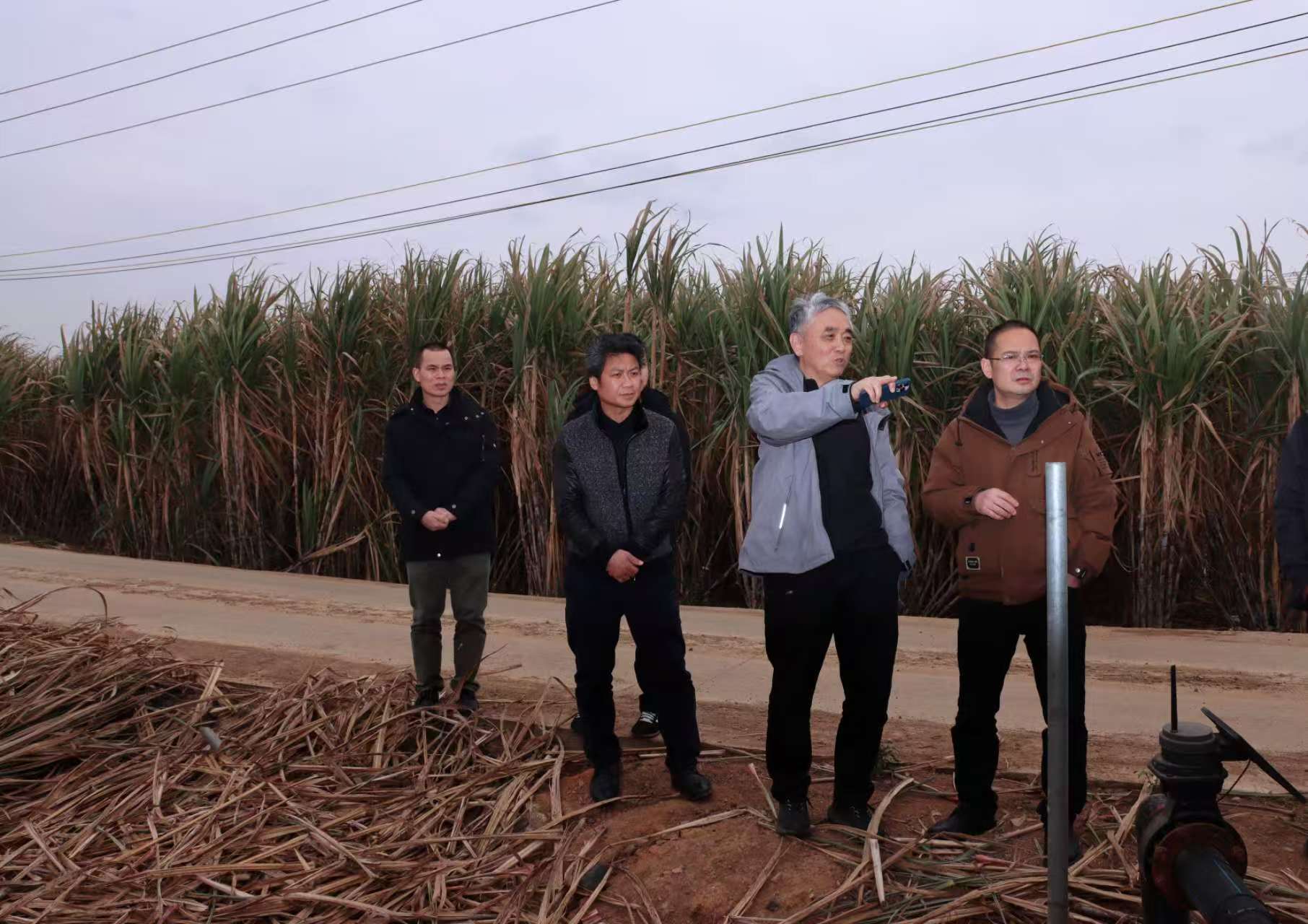 在五良农业甘蔗生产基地查看甘蔗种植情况