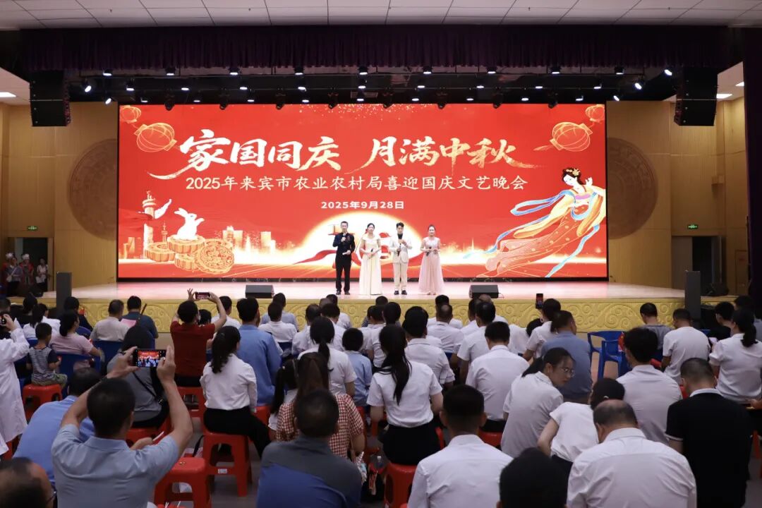 金秋时节,丹桂飘香。9月28日晚,在祖国76周年华诞来临之际,来宾市农业农村局隆重举行喜迎国庆文艺晚会。局领导班子成员、机关及直属事业单位全体干部职工与家属共200余人欢聚一堂,通过一场富有“线上博彩 ”特色的艺术盛宴,深情表达对祖国的赤诚热爱,生动展现新时代农业农村工作者的昂扬精神风貌。