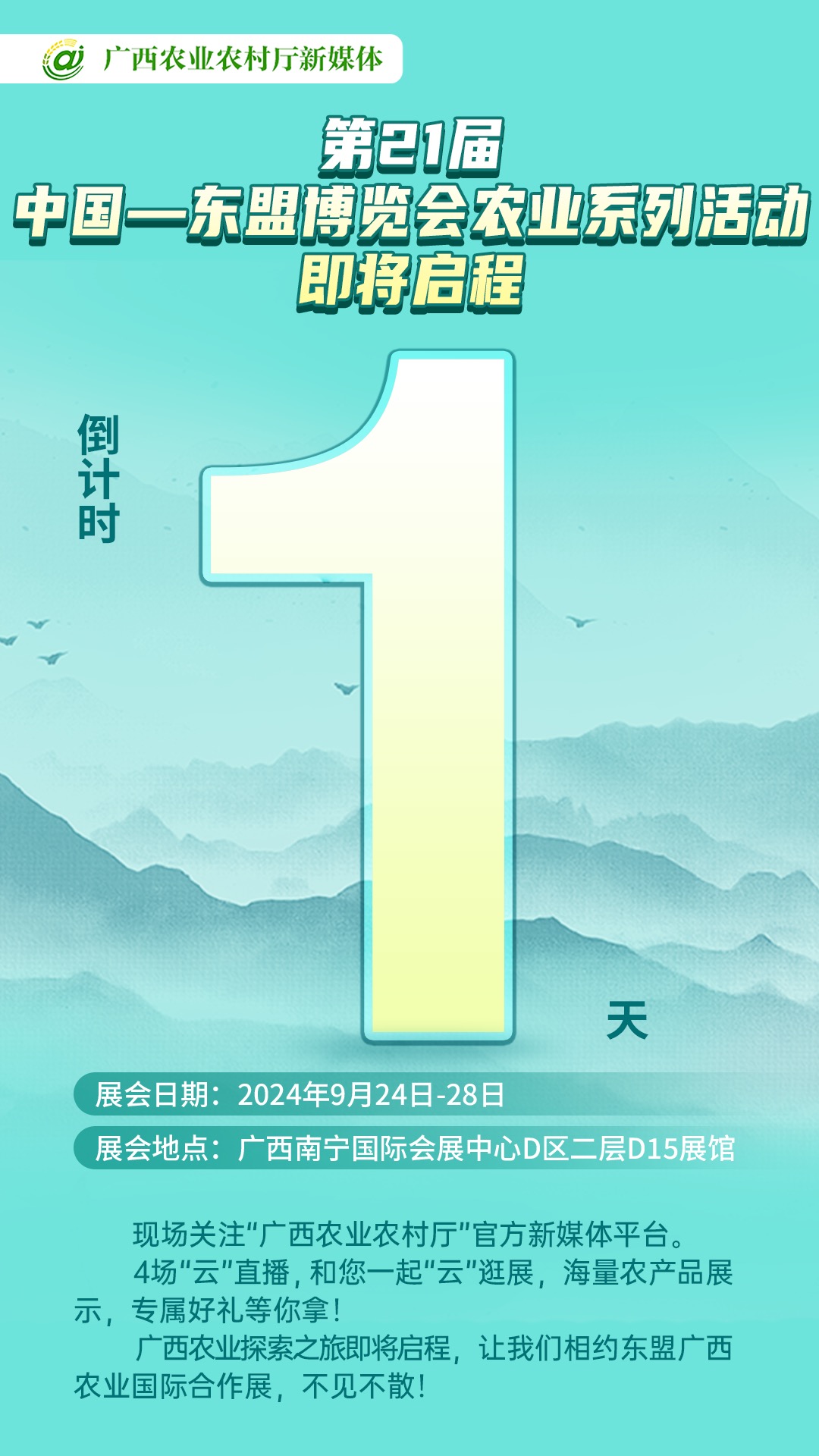 倒计时1天!中国—东盟博览会农业系列活动即将启程!这里不仅有琳琅满目的特色农产品,以及广西农业发展成果展示,还有丰厚好礼蓄势待发,只为迎接您的到来!