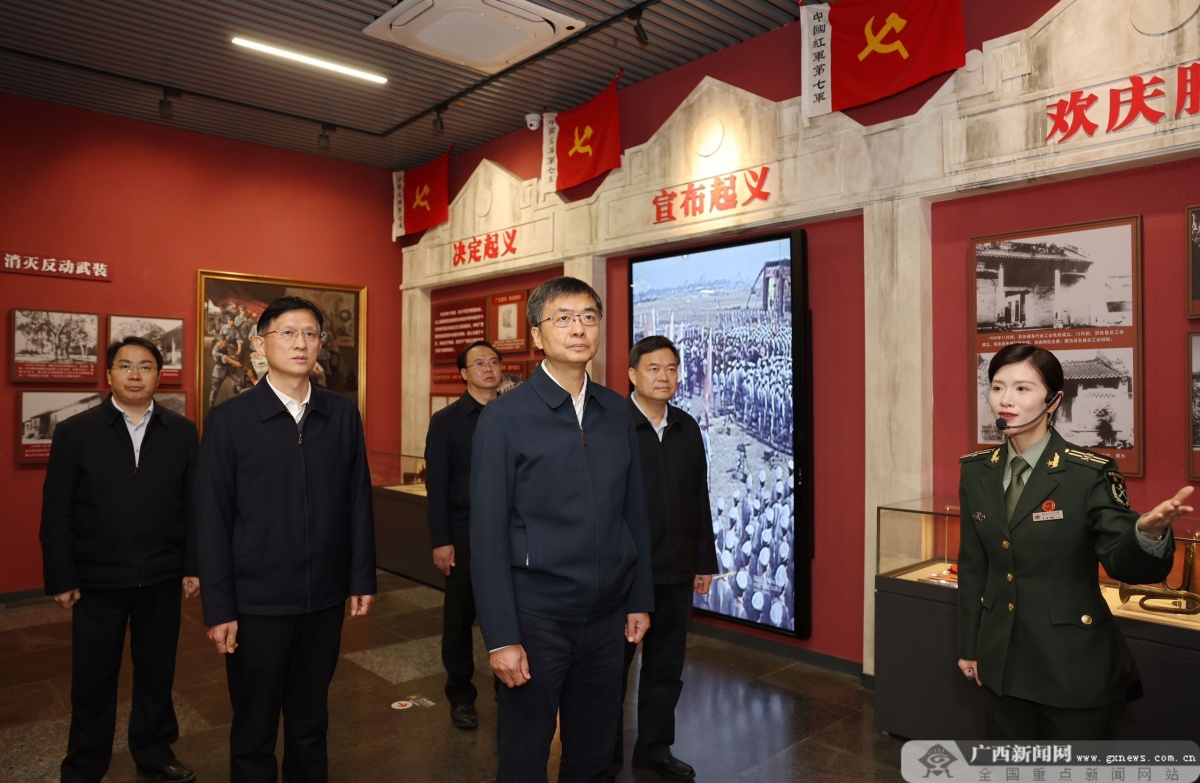 96年前,邓小平、张云逸等老一辈革命家来到广西,领导发动了威震南疆的百色起义,创建了右江革命根据地,树立了我们党领导民族独立和民族解放伟大事业的不朽丰碑。陈刚来到百色起义纪念碑园瞻仰广场,向革命先烈敬献花篮,表达敬仰缅怀之情,并参观了红七军军部旧址、百色起义纪念馆。一件件珍贵实物、一幅幅历史照片、一个个鲜活场景,诉说着先烈们英勇无畏的革命气概和矢志不渝的理想信念,生动再现了百色起义伟大艰苦的奋斗历程。陈刚认真聆听讲解,不时驻足凝视,详细询问有关情况,叮嘱要保护好革命先烈纪念设施。陈刚说,邓小平、张云逸等老一辈革命家在领导发动百色起义过程中,形成了百折不挠、实事求是、依靠群众、团结奋斗的革命精神。历史是最好的教科书。我们要不忘初心、牢记使命,传承和赓续好红色基因,奋力创造不负革命先辈、无愧于历史和人民的新业绩,凝心聚力建设新时代壮美广西。