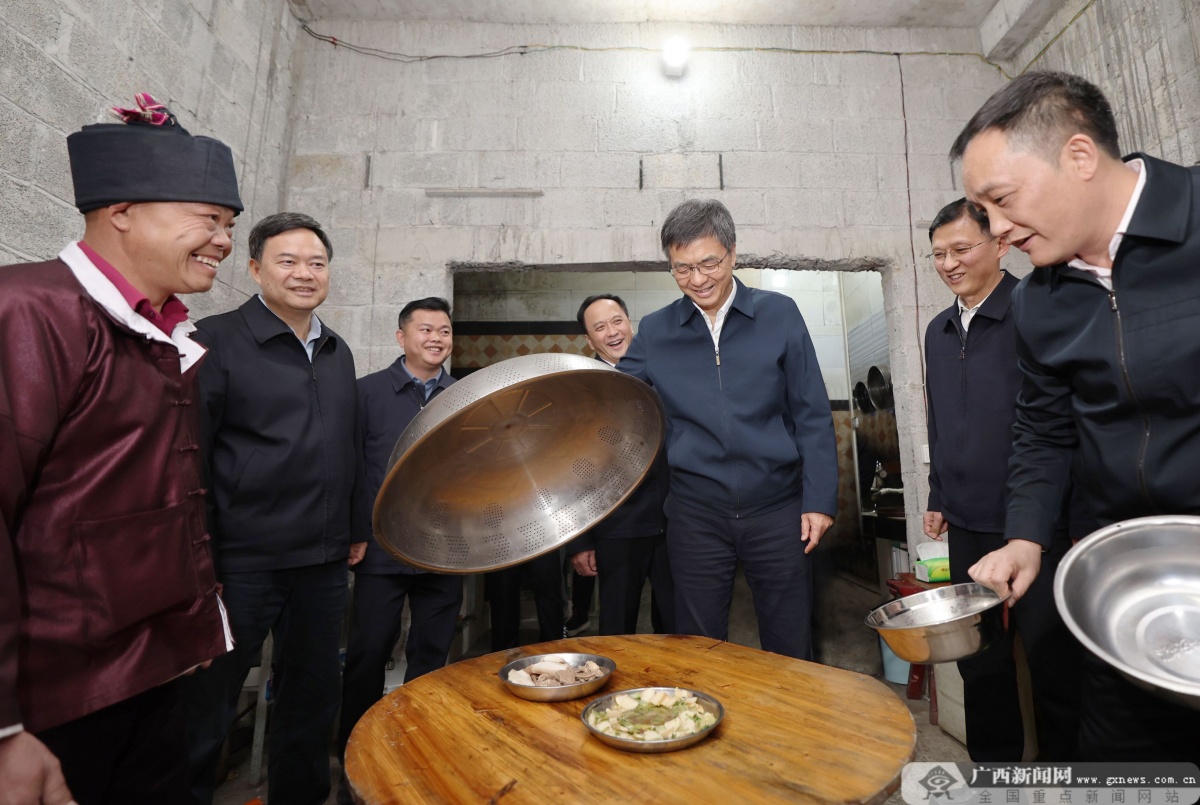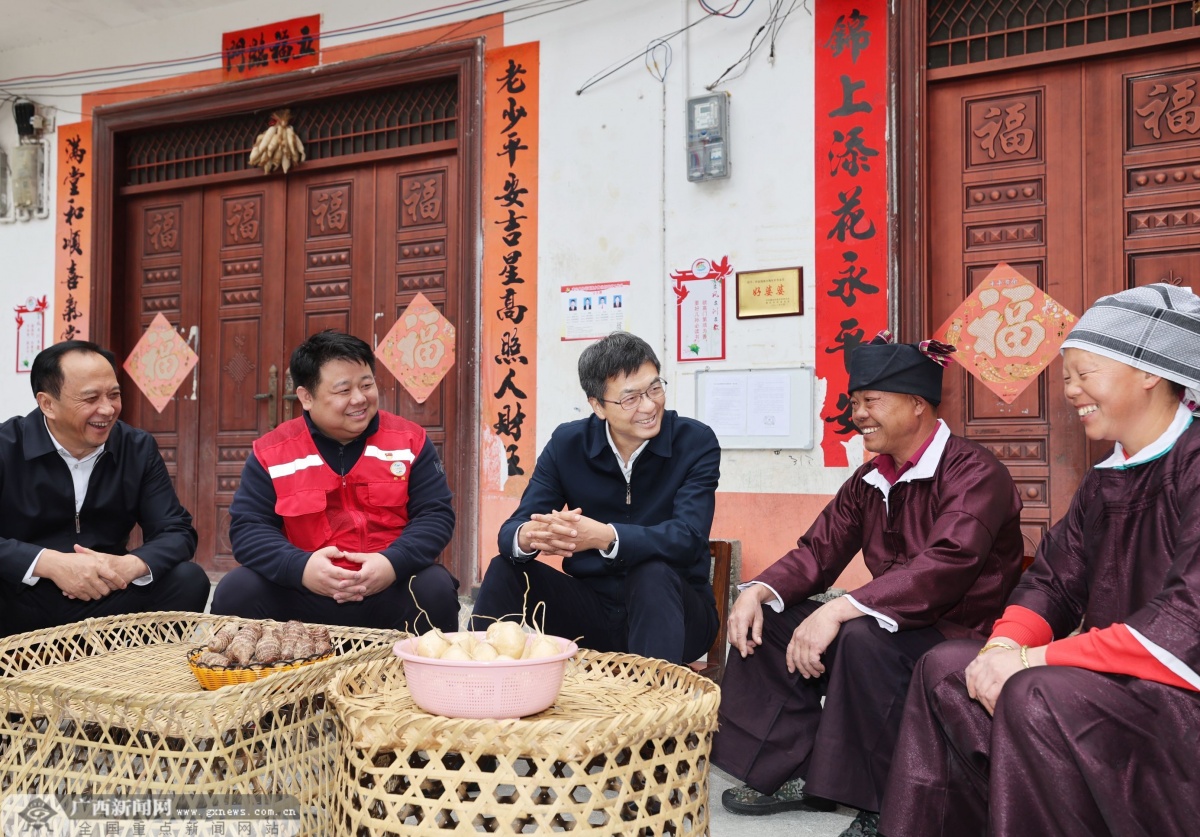 百色市凌云县伶站瑶族乡陶化村地处石漠化大石山区,贫困发生率曾一度超过80%,2020年底脱贫摘帽,这些年通过组织群众外出务工、发展养殖业等方式,致富路子越走越宽广。当天下午,陈刚乘车翻山越岭来到陶化村弄洞屯,沿着依山而建的村道察看村容村貌,走进脱贫户陆志康家,揭开锅盖看吃得好不好,上楼看住得怎么样,随后在场院与陆志康夫妇、驻村第一书记等围坐一起拉起了家常,关切询问陆志康夫妇家庭收入、就业渠道、老人赡养、子女教育等情况。了解到村里不仅家家户户住房条件都得到极大改善,不少村民还买了汽车,生活水平显著提高,陈刚由衷高兴,祝愿村里发展得更好。陈刚说,让人民生活幸福是“国之大者”。百色市是革命老区、少数民族地区、边境地区、大石山区、石漠化地区,过去有的地方甚至“一方水土不能养活一方人”,通过易地扶贫搬迁才拔掉了穷根。要夯实五级书记抓乡村振兴政治责任,抓好有效衔接工作,加强返贫致贫动态监测和帮扶,关心关爱因病因残困难群众,坚决守住不发生规模性返贫致贫底线。要充分发挥特色资源优势,大力发展芒果等特色产业,推动一二三产融合发展,完善联农带农机制,吸纳群众就近就业,持续推动农业增效益、农民增收入、农村增活力,让革命老区各族群众日子越过越红火。