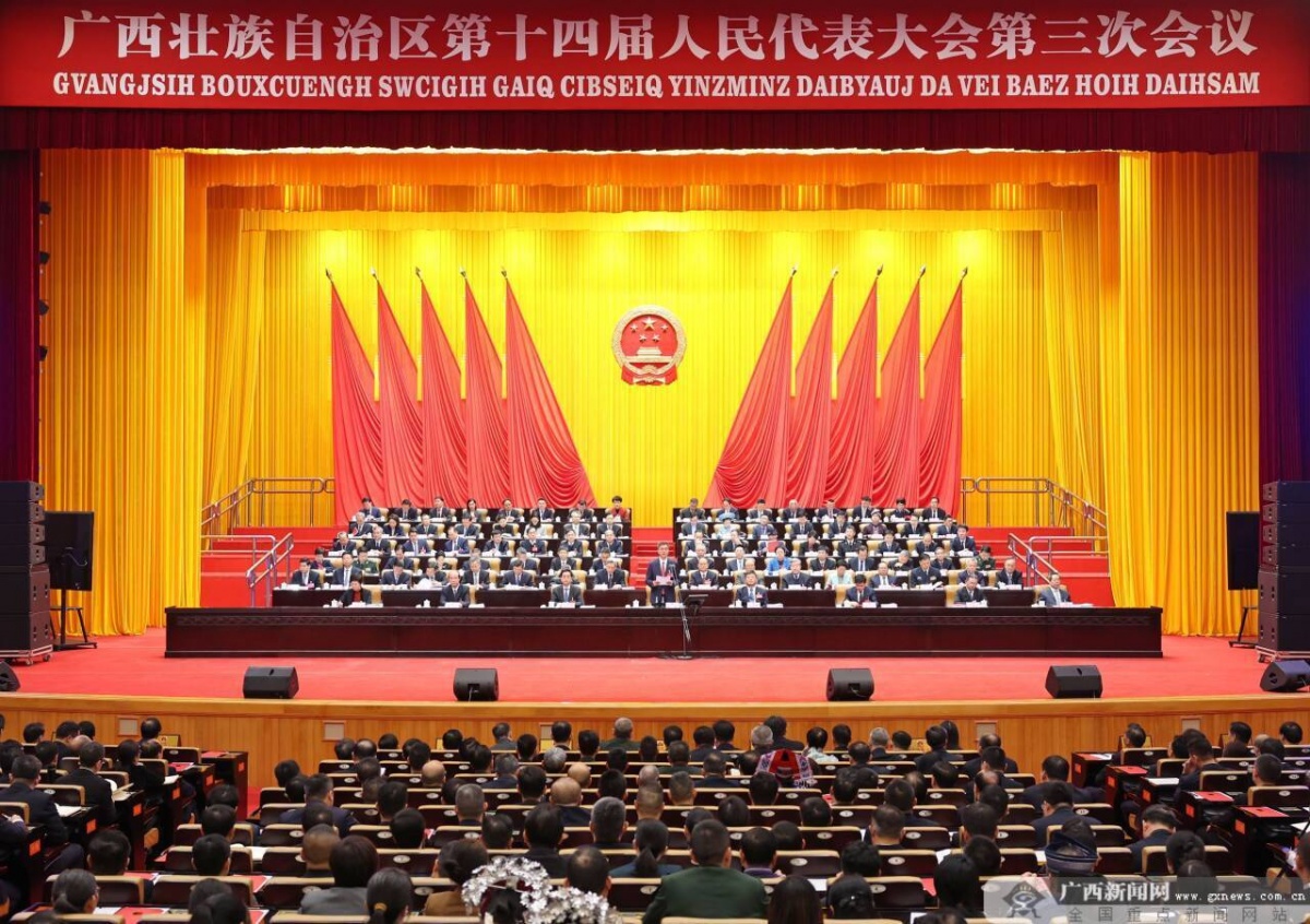 广西云-广西日报1月17日讯(记者 陈贻泽 龚文颖 罗昌亮 钟小启)1月17日上午,广西壮族自治区第十四届人民代表大会第三次会议圆满完成各项议程,在广西人民会堂胜利闭幕。