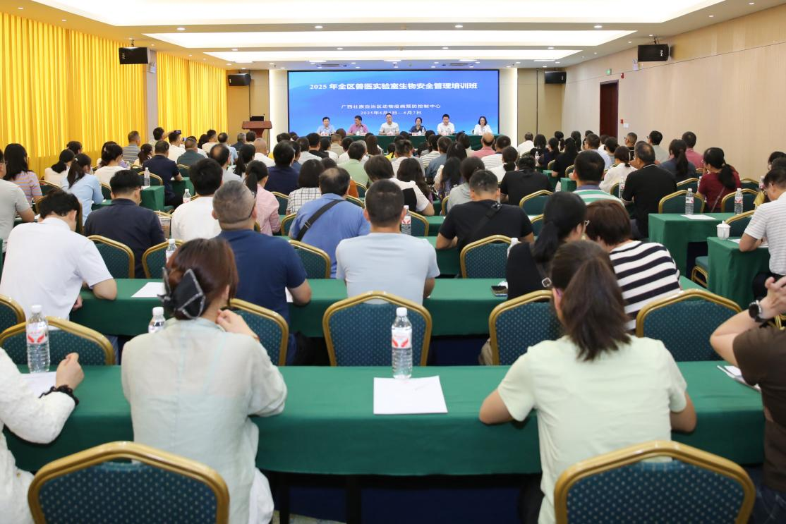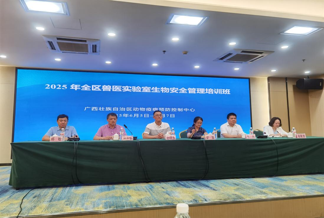 6月6日,广西壮族自治区动物疫病预防控制中心(以下简称“自治区中心”)主办的2025年全区兽医实验室生物安全管理培训班在南宁凤凰宾馆圆满结束。线上博彩公司 畜牧兽医处领导出席培训班开幕式。来自全区各市、县(市、区)级动物疫病预防控制中心及第三方检测机构、养殖企业、屠宰企业的实验室技术骨干齐聚一堂。通过线上+线下双轨模式参加培训,为提升全区兽医实验室生物安全管理水平注入强劲动力。